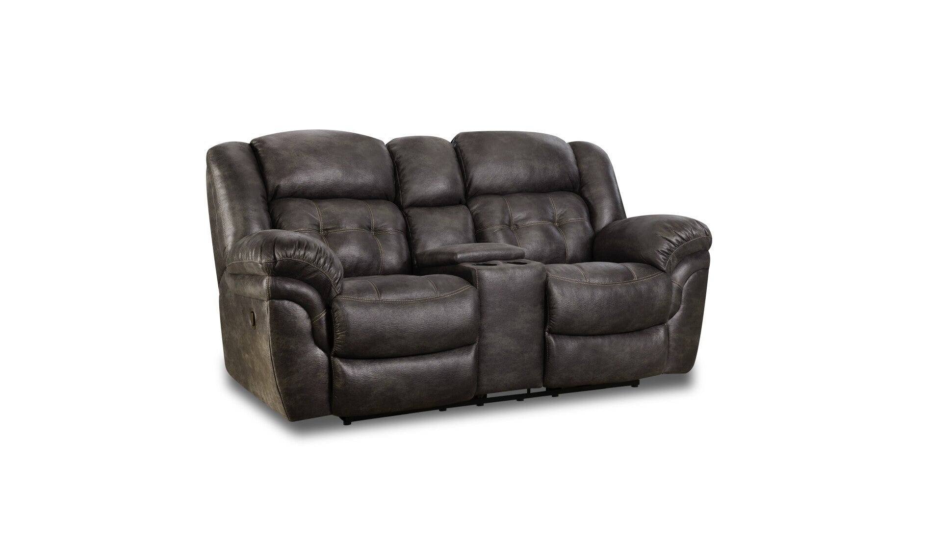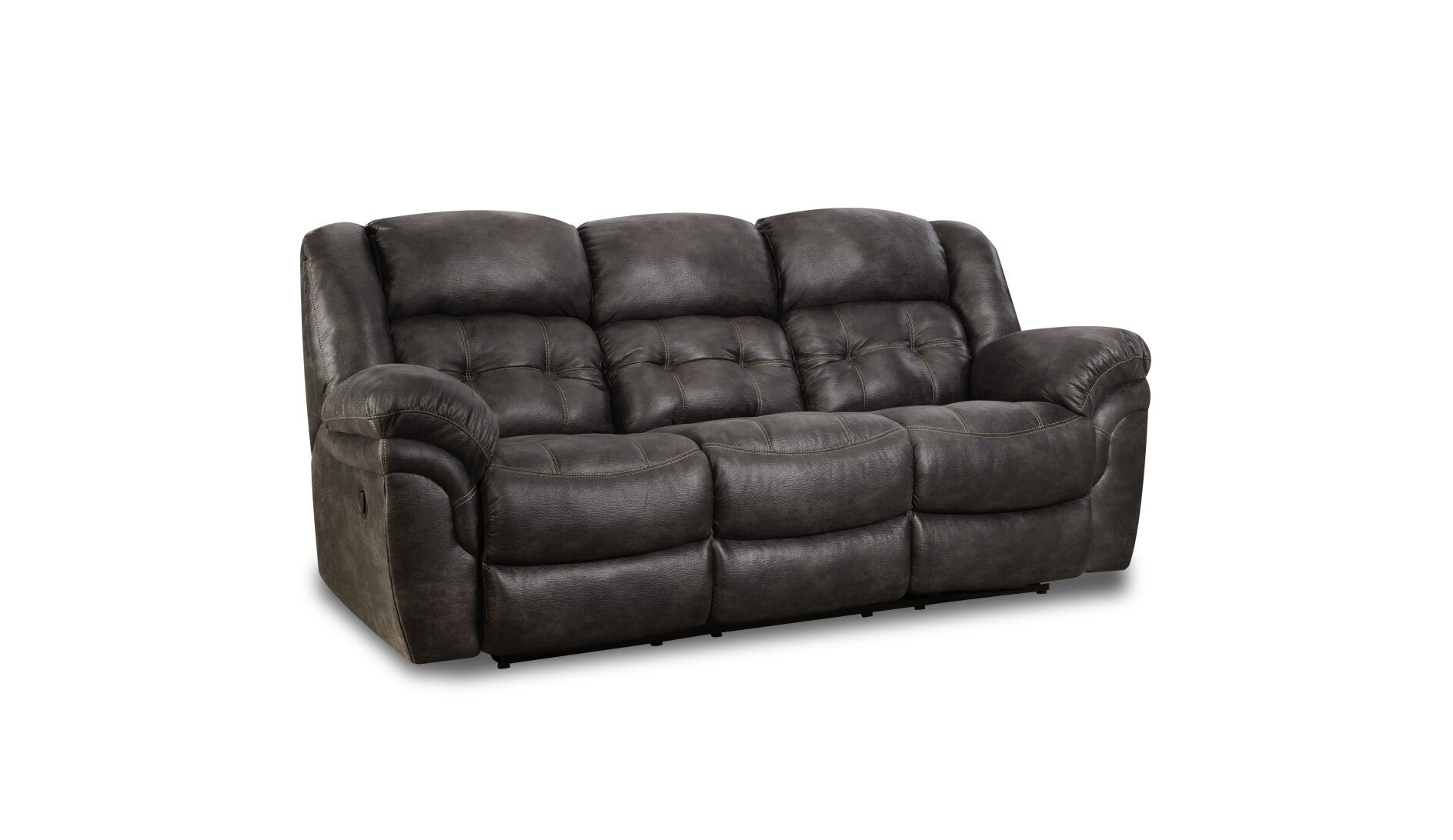 The Frontier Double Reclining Sofa in Charcoal features a sleek design with double needle accent stitching, adding a touch of sophistication to any living space. The tufted seats and back provide both comfort and style, while the plush, pad-over chaise leg support ensures optimal relaxation. Made from 100% polyester, this sofa is not only easy to maintain but also durable, making it a perfect addition to any home.