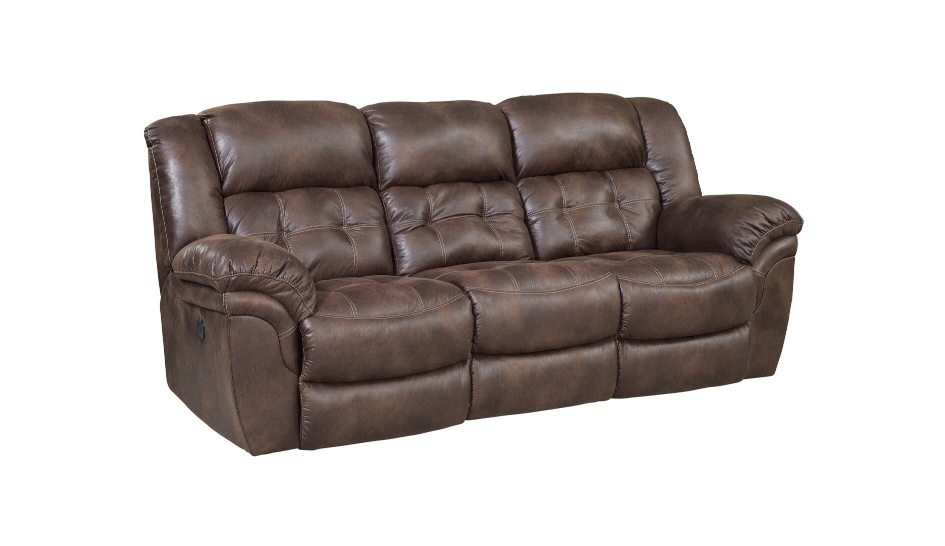 The Frontier Double Reclining Sofa in Espresso features a sleek design with double needle accent stitching, adding a touch of sophistication to any living space. The tufted seats and back provide both comfort and style, while the plush, pad-over chaise leg support ensures optimal relaxation. Made from 100% polyester, this sofa is not only easy to maintain but also durable, making it a perfect addition to any home.