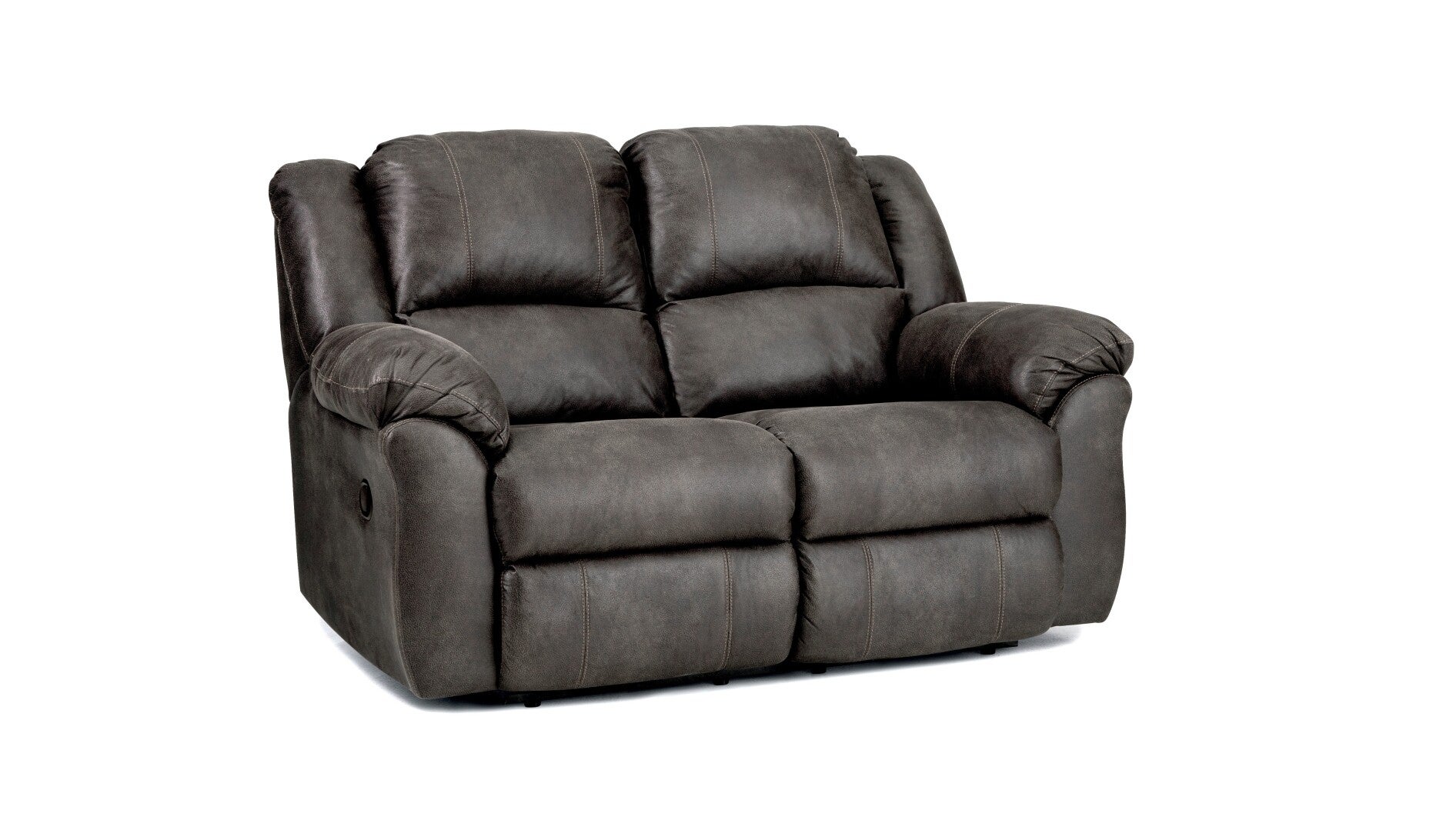 This double reclining Junction loveseat features solid foam arm pads and plush, pad-over chaise seating for extra leg support. The 100% polyester faux leather cover is easy to maintain and showcases an attractive contrast stitch.