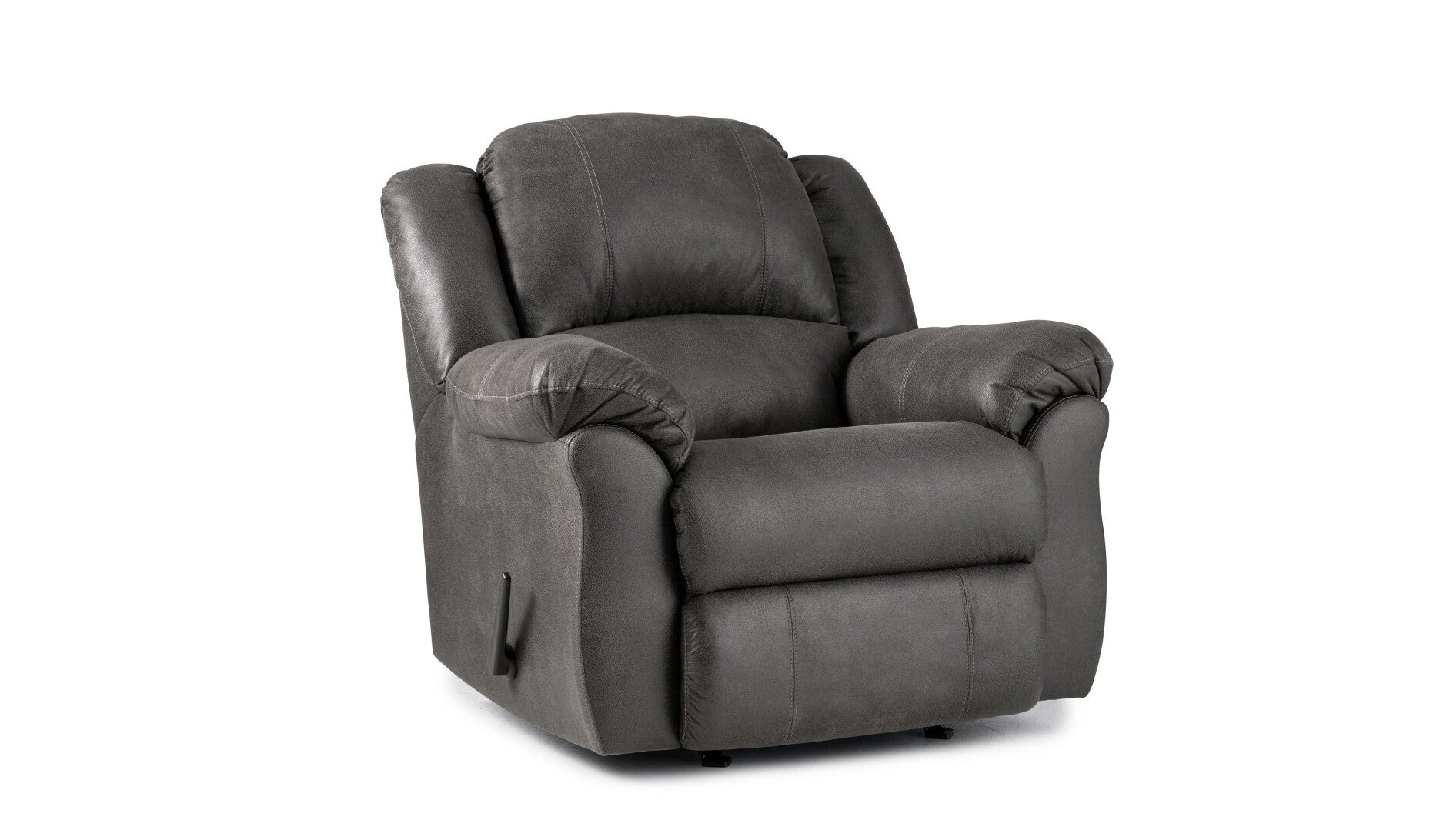 This Junction rocker recliner features solid foam arm pads and plush, pad-over chaise seating for extra leg support. The 100% polyester faux leather cover is easy to maintain and showcases an attractive contrast stitch.