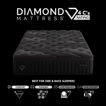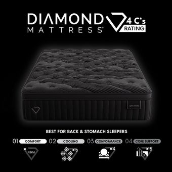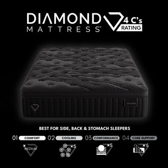 The Black Diamond Mattress by Diamond Mattress is a high-end sleep solution designed for those who want advanced cooling, luxury comfort, and lasting support. As part of Diamond's premium collection, it features cutting-edge materials like IceFlex™ cooling bands, graphene- and charcoal-infused foams, and temperature-regulating fabrics to help reduce surface temperature and keep sleepers cool throughout the night.