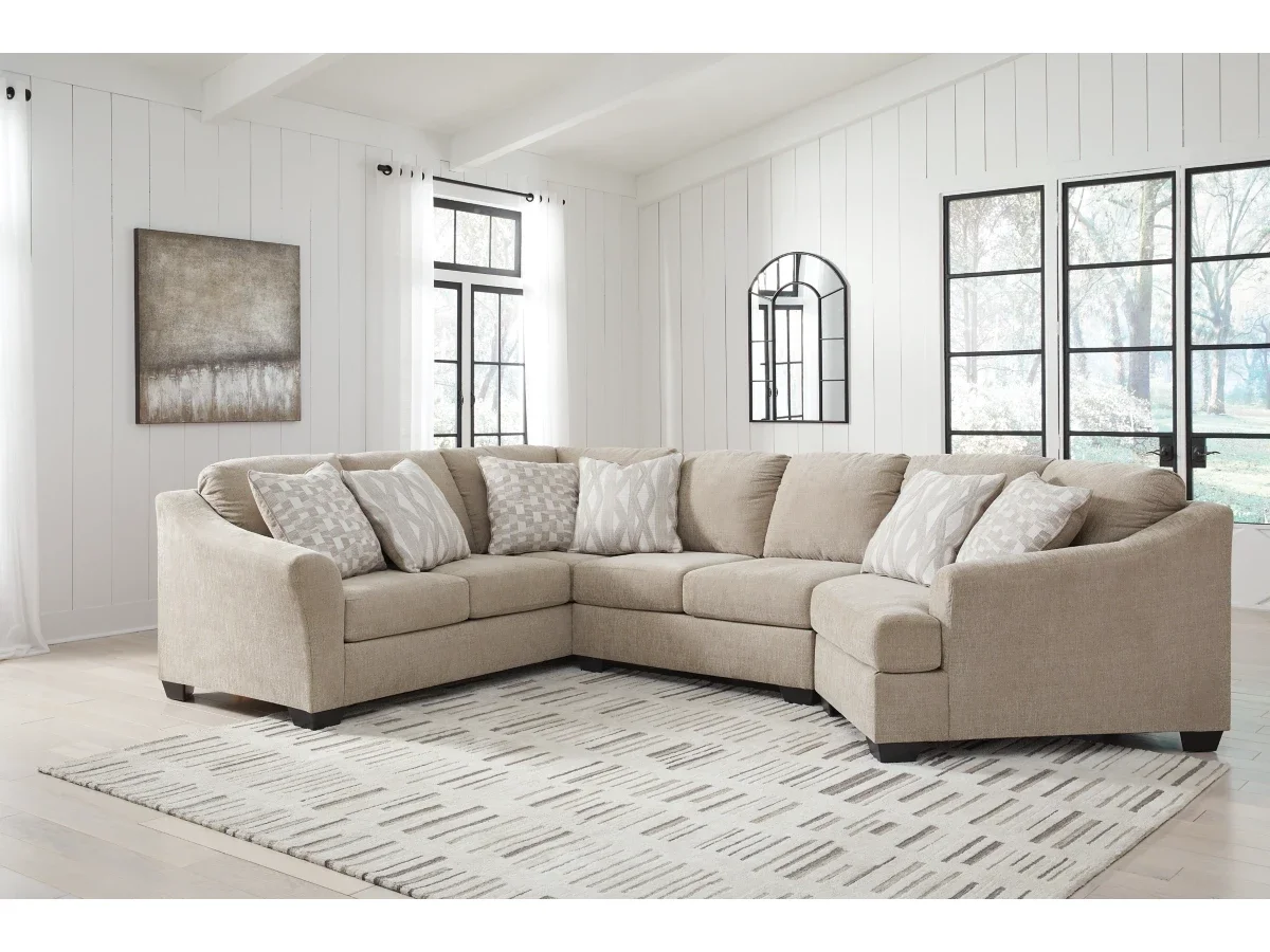 Includes 3 pieces: left-arm facing sofa with corner wedge, armless loveseat and right-arm facing cuddler