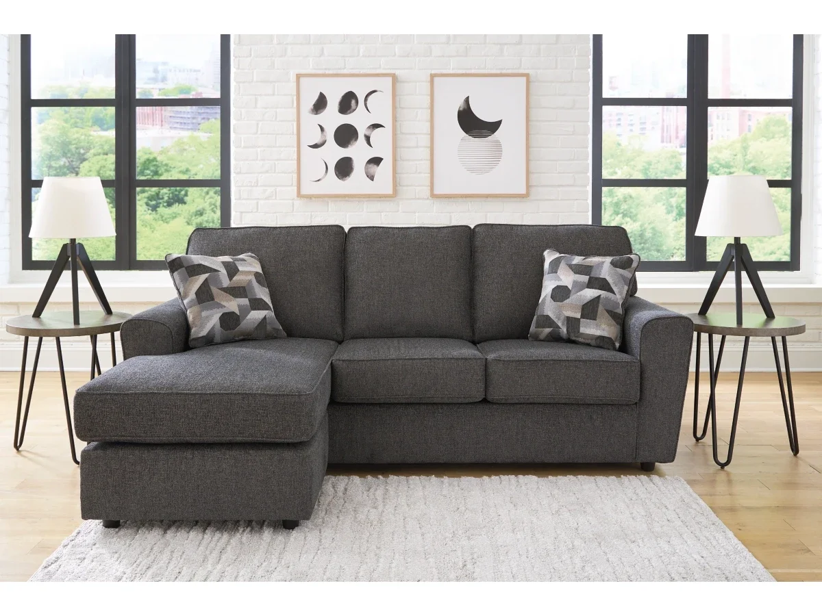 Revamp your sleekly styled living room sanctuary with the Cascilla sofa chaise. Well-suited to contemporary spaces with a calming neutral upholstery in slate gray, it makes a subtle design statement in your space whether you’re hosting guests or enjoying a night in. Enamoring with its streamlined design, it’s a simply stylish way to sink into superior comfort.
