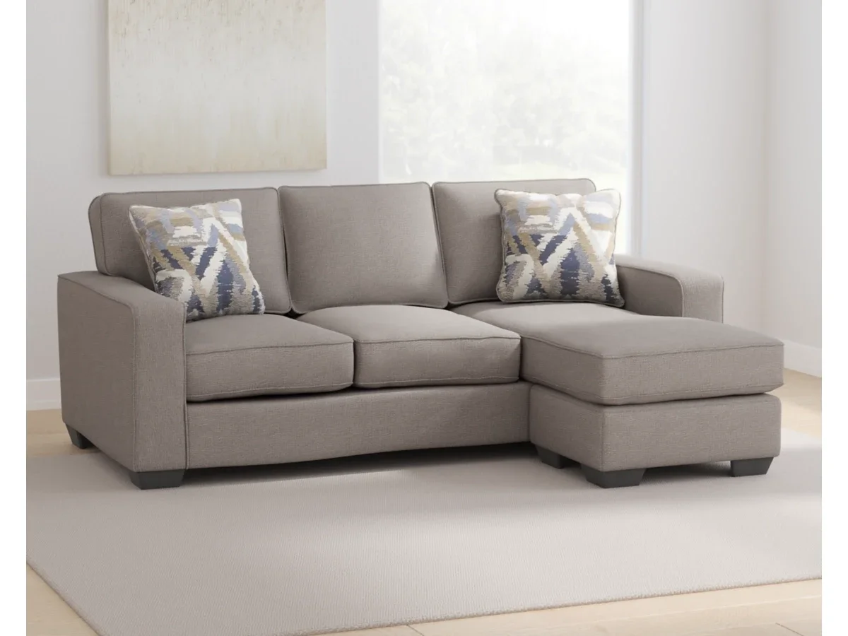 Make your living space that much more livable with the Greaves sofa chaise. You’re sure to love its L-shaped design that makes it all too enticing to kick up your heels and relax. The fact that this sofa chaise can be positioned with the chaise on the right or the left only adds to its appeal. And you can rest assured that its ultra-neutral upholstery with a textural chenille feel goes with anything and everything. Wide track armrests, box cushions and tapered feet lend a clean, contemporary aesthetic.